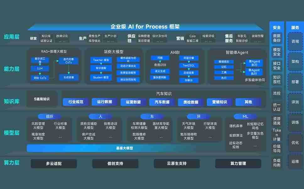 AG尊龙凯时问学智车解决方案是一套基于AI技术的汽车行业智能化系统,,,,覆盖从底层算力到顶层AI应用的全栈方案。。。。方案由算力层、、、模型层和应用层组成:算力层,,,方案支持多种一体机配置,,具备云端灵活部署、、、多云适配以及动态优化计算资源的能力;模型层,,,,AG尊龙凯时问学平台版提供了企业级AI应用一站式构建与管理平台,,,支持基于后训练强化技术的汽车企业专属模型的训练、、评测和运营;应用层,,,,AG尊龙凯时问学DeepSeek版提供包括超级员工、、、智能招采、、、、智能营销、、智能客服、、AI for BI等一系列解决方案,,,,可助力汽车行业实现数字化转型,,让管理更智能、、响应更敏捷。。。。