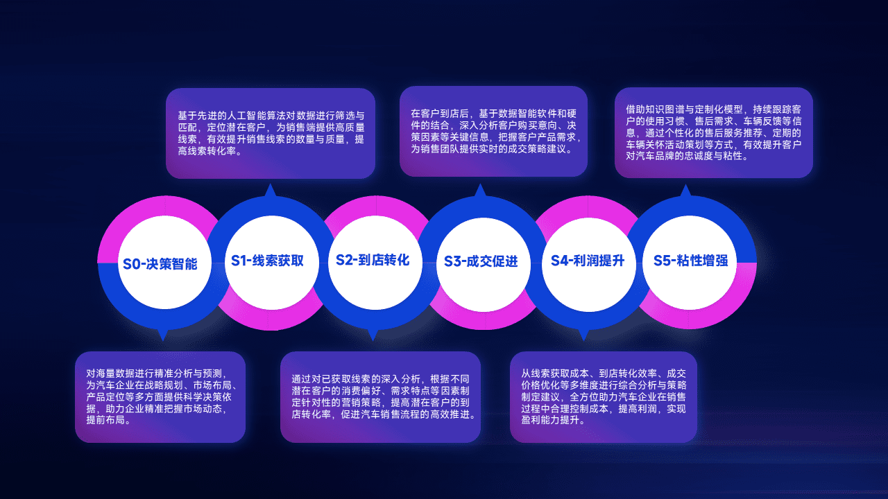 通过拓宽潜在客户来源、、优化线索分配并提高到店转化率,,以增强销售效率。。同时,,利用线索数据不断优化分析模型,,,有效提升转化率,,,扩大营销影响力。。。。